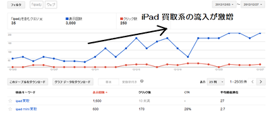 iPad買取でコバンザメ作戦したときよりも、流入がかなり少ないです。